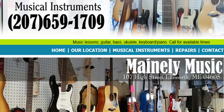 A!A Web Design would like to announce the launch of our newest website "MainelyMusic.net" A music store in Ellsworth Maine offering musical instruments, repairs, and music lessons in downeast Maine.